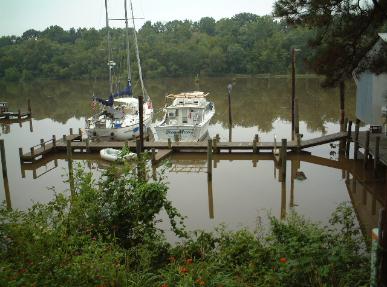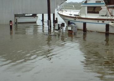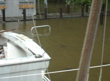 | Just across from us, the piers were under and the fuel dock was headed down! |